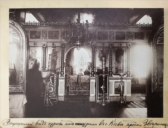 12. Interior of the Church of the Nativity of the Blessed Virgin above the Zvirynets caves, early 20th century. (KPL-F-5755)