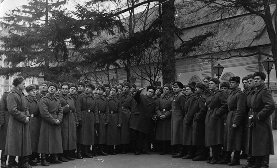 2. Group of servicemen listen to the story of V. Shydenko, the Preserve worker.