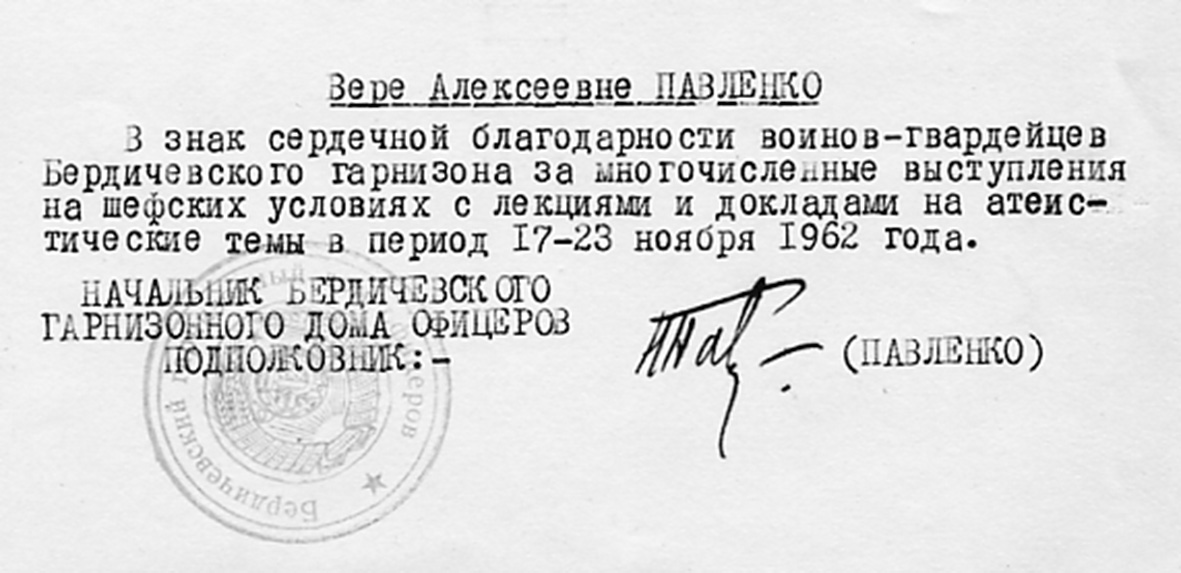 6. V. Pavlenko, the Preserve worker, after a lecture at the Berdychiv House of Officers. November 1962