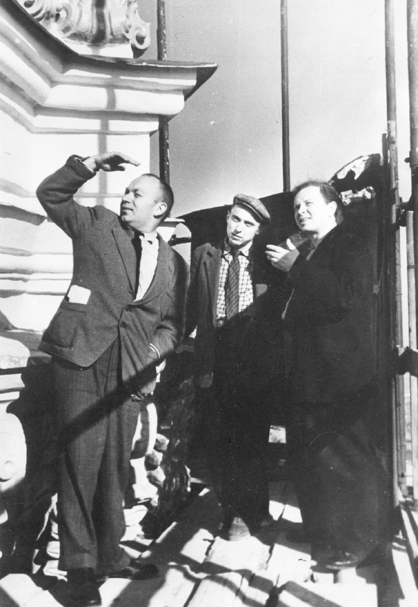 8. Workers of the Preserve inspect the progress of the restoration of the Great Lavra Bell Tower. S. Kilesso is pictured first from the left.