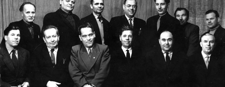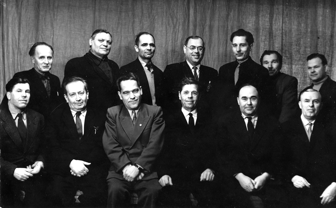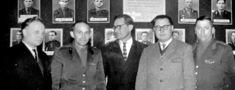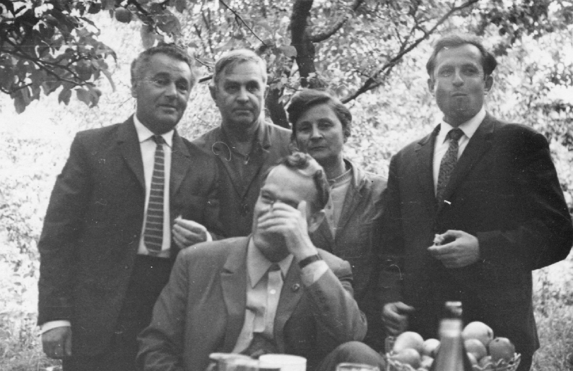 7. Workers of the Preserve V. Krykotun, F. Lazaikin and P. Darmansky with the heads of the Berdychiv House of Officers. February 1964