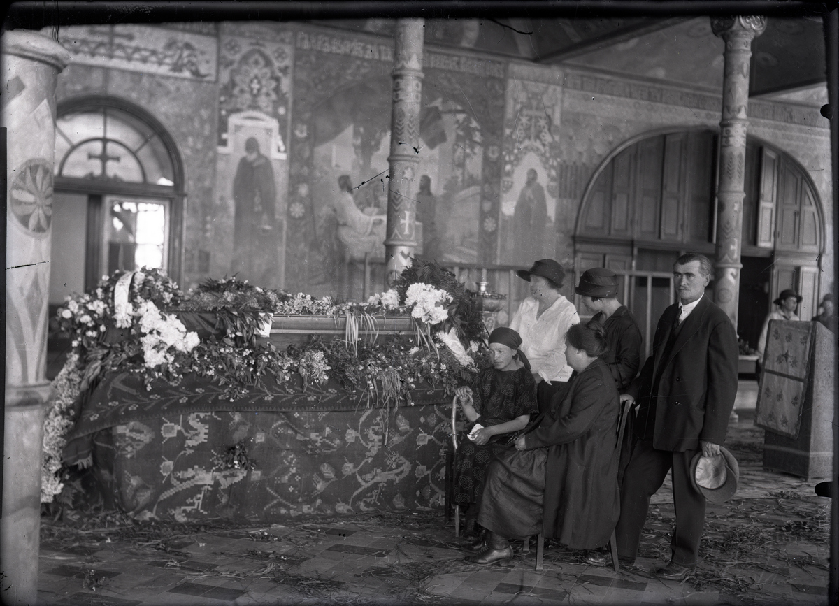 Danylo Shcherbakivsky was buried on the territory of the All-Ukrainian Museum Town (now - our Preserve) on June 11, 1927. Among the many Ukrainian intellectuals present at the funeral was the artist Vasyl Krychevsky, the husband of the sister of the deceased, Yevhenia Krychevska, née Shcherbakivska. The photo negative captures them near the coffin of Danylo Shcherbakivsky in the Refectory Chamber of Sts. Anthony and Theodosius of Pechersk Church. A photoprint of this negative is preserved in the collection of Dmytro Antonovych Museum-Archives in UVAN in the USA.