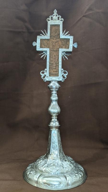 Dear friends! Today “Artistic Heritage” section presents a new carved artwork from the Fund collection of the National Preserve “Kyiv-Pechersk Lavra”. It is the altar cross of Cossacks kuren of Mensk district (KPL-M-9368).