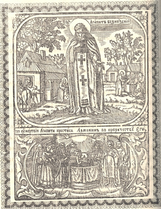 At that time, a famous doctor, an Armenian by birth, lived in Kyiv. He was a connoisseur of the healing potion but had completely different principles. He predicted and told the patient the exact time of the latter's death but left him without treatment. The Armenian was obsessed with envy of the Pechersk healer, who repeatedly healed those doomed to death. When Agapit himself became seriously ill, despite the Armenian's predictions, he lived not three days, but three months, as he predicted by himself. After the death of Agapit, the doctor, according to the Saint, was baptized in the Orthodox faith and took the monastic vows in the Pechersk Monastery.