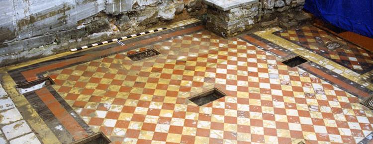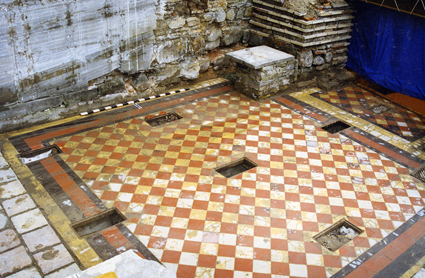 4. A section of the floor in the narthex with air duct openings through which warm air was coming to the Church premises