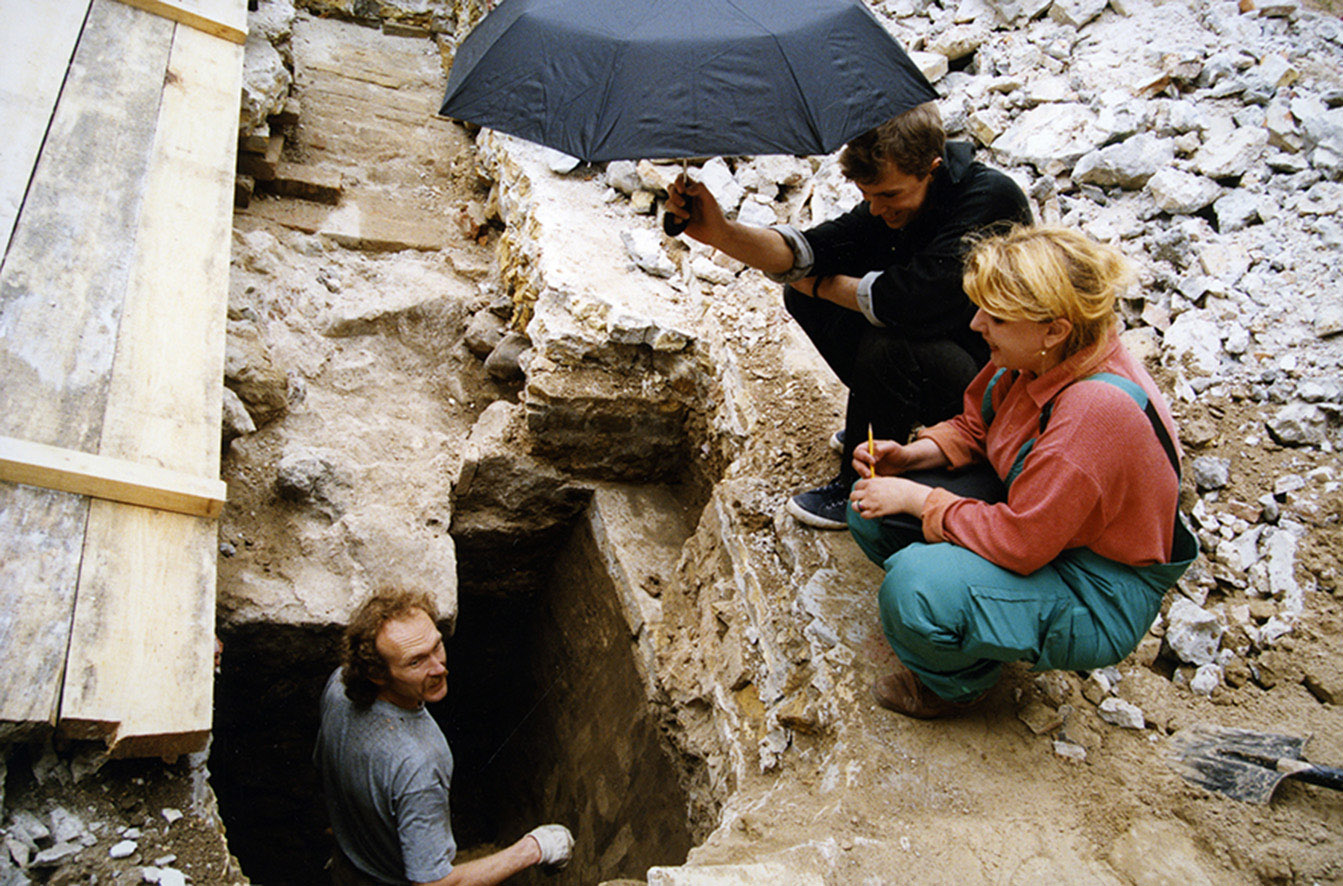 During the architectural and archaeological research of 1997–2000, one of the priority tasks was to inspect the system of heating channels constructed in the late 19th century and determine the state of their safety. In total, about 100 m of underground galleries in the central part of the Cathedral were cleared and inspected. They stayed almost unresearched archaeologically until then. That is why, our today’s selection of photos tells about that particular stage of the inspection.