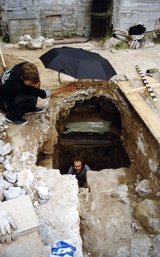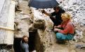5-6. Heating channels start to be cleared. Photo № 6 shows Andriy Zankin in the excavation and Oksana Chobitko - near the excavation on the right.