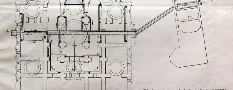 1. Drawings from the article by Ivan Lilier (“Engineer” magazine, 1886) that show the arrangement of heating and ventilation systems in the Great Pechersk Church [KPL-A-588]