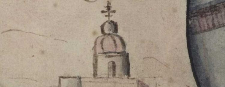 1. Symbolic image of Mezhyhirya on the map of Kyiv province (18th c.)