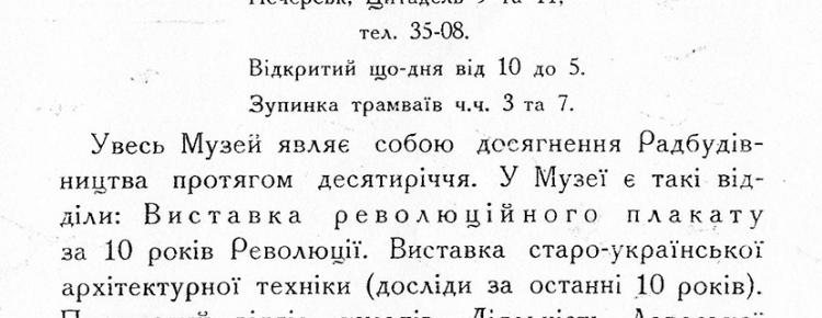 One of them was addressed to the administration of Kyiv District Communal Utilities. It was about issuingan order to the tram conductors (routes № 3 and № 7) to announce stops near St. Nicholas Military Cathedral and School for Working Youth (№ 84) as “All-Ukrainian Museum Town”. It was also proposed that the explanation about the past affiliation of that place with Lavra be given only in case of need.