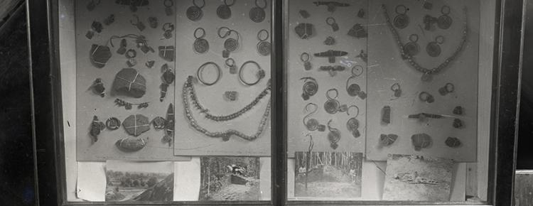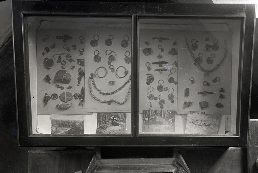 3. Showcase with the materials from Sumy Museum. Artifacts found during the excavations of 1929 near Pishhane village (Sumy City Council), (supervisor - Mykola Makarenko) “Exhibition of the Achievements of the Ukrainian Archeology for the Ten Years of the Soviet Rule” 1931 [KPL-N-1442]