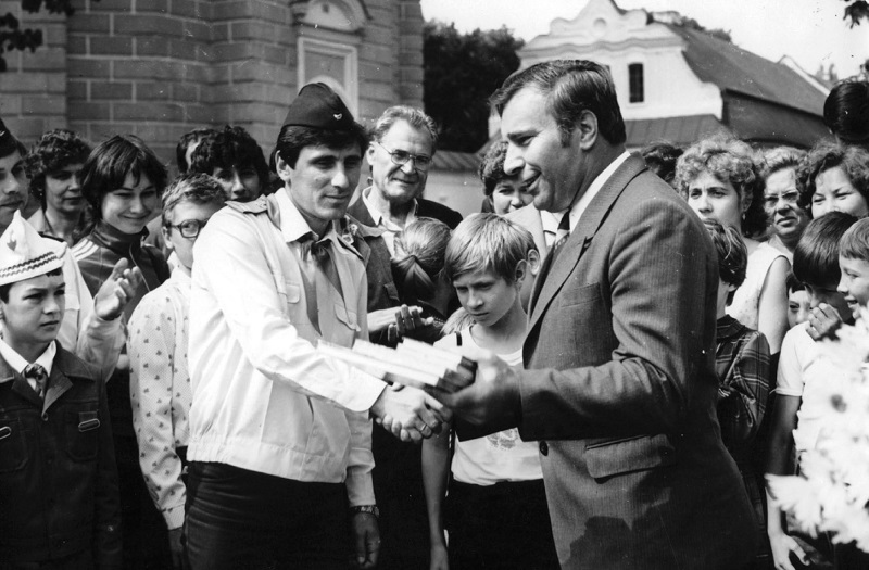 5. Yu. Kybalnyk, Director of Kyiv-Pechersk Preserve, presents memorable gifts to a million visitor. Mid-1980s.