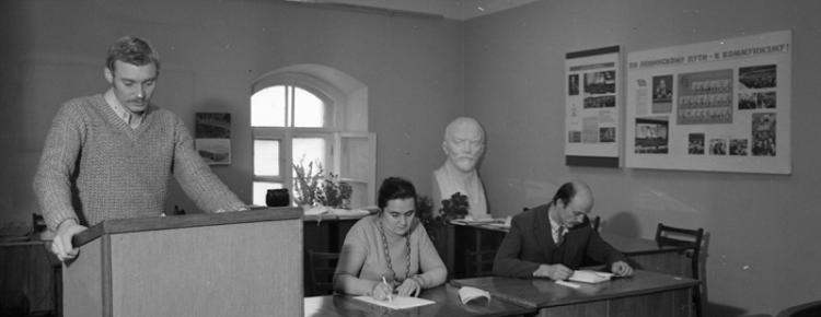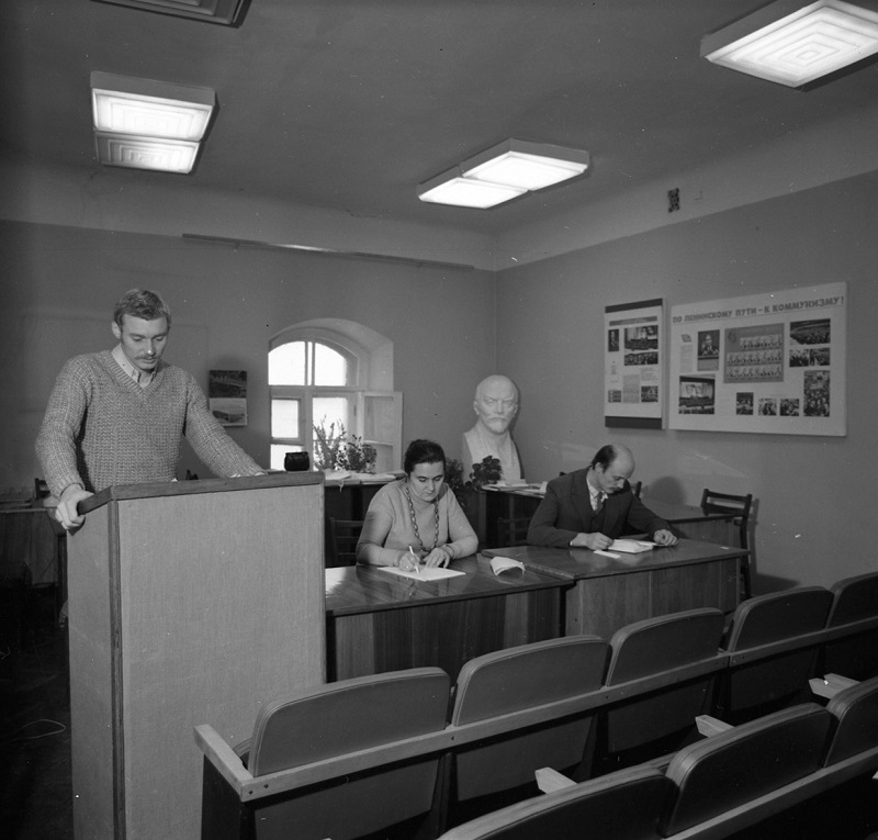 8. Lecture work. Researchers: L. Dobroserdova, G. Kotova, L. Nastenko, V. Chaika. Early 1980s.