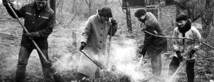 2. Near Caves garden activities. Working researchers: A. Kolyada, T. Khorolska, Y. Skorokhod, L. Gupalenko. Mid-1980s.