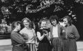 6. Waiting for the tourists. From left to right: G. Lytvynenko, O. Lopukhina, T. Malyshenko, N. Sveshnikova, N. Lupanova. Mid-1980s.