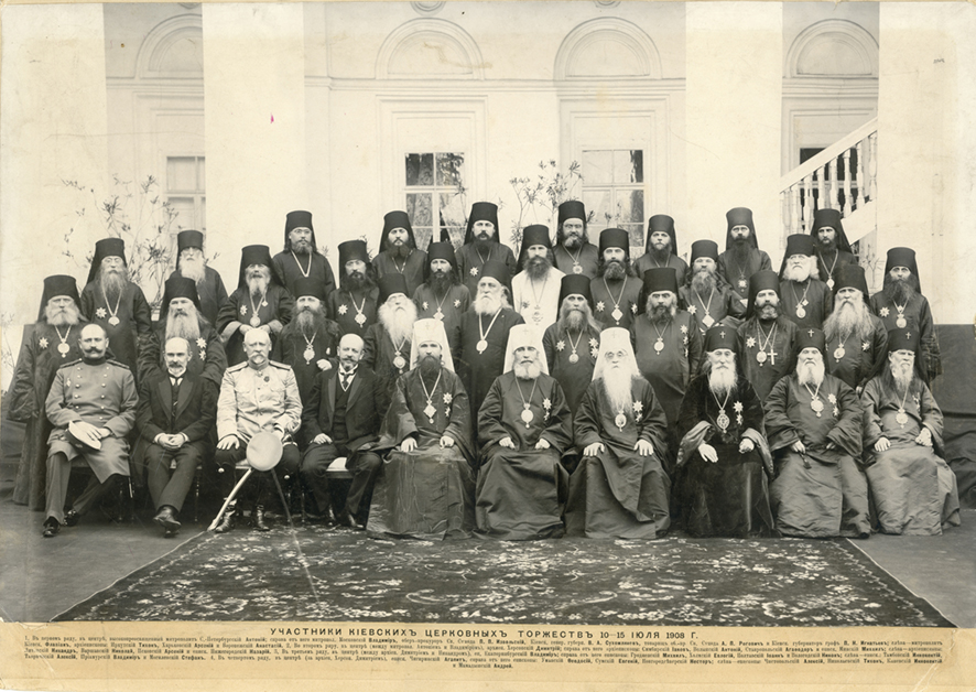 In the first photo you can see a group portrait of hierarchs and senior imperial officials who took part in the First All-Russian Missionary Congress, held in Kyiv on July 10-15, 1908. Among its participants there were three metropolitans, ten archbishops, twenty-three bishops, about five hundred parish priests, as well as missionaries, synodal ministers, and seminary teachers. The photo was taken near the southern facade of the metropolitan residence in the Lavra (now it is the National Museum of Ukrainian Folk Decorative Art).