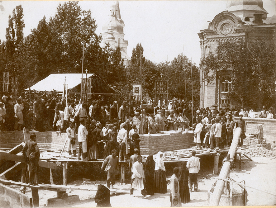 Another photograph captures the founding of the church dedicated to the icon of the “Joy of all who Sorrow”. It was the church at the new Lavra Hospital (1911). Funds for the construction of the hospital, about 100 thousand rubles, were provided by Kyiv Metropolitan Flavian (Gorodetsky). It is him we see in the center of the apse of the future church.