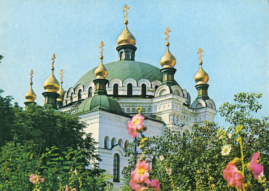 In most cases, postcards of the 1970s demonstrated the general view of Lavra’s architectural ensemble. Shots were made either from the Dnieper River or from the helicopter.
