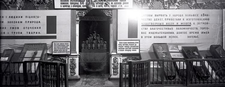 In 1934, an exhibition of mummified samples opened for the visitors of the “All-Ukrainian Museum Town” State Historical and Cultural Preserve. It operated then on the territory of the Kyiv-Pechersk Monastery? The exhibition was located in the interior of the Church of the Exaltation of the Holy Cross in the Near Caves. One could see there “the samples of artificial and natural mummification that belonged to both, humans and animals”. Due to the policy of the totalitarian Bolshevik government, which demanded that museums conducted aggressive anti-religious propaganda, museum workers of the so-called “Division of Natural and Artificial Mummification” were forced to tell the tourists about “the corpses that did not decompose” as well as human remains and animal сarcasses that “were fabricated”. On the list of these “fabricated relics” one could find the remains of the Venerable Grygoriy the Icon Painter, St Eustratius the Faster and John the Long Suffering; the photographs of mummified bodies of the members of the Lyzogub Cossack family; the carcasses of the animals (like crocodile, bat, or calf) etc.