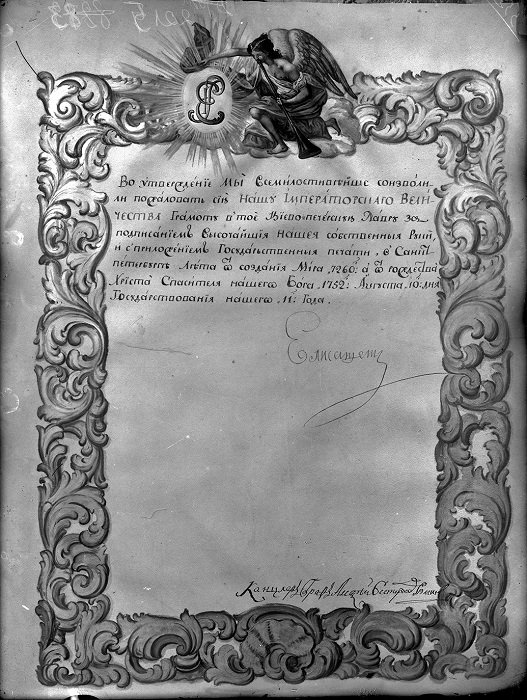 10. Fragment of Elizabeth Petrovna's letter missive confirming the ancient rights and privileges of the Kyiv-Pechersk Lavra. August 10, 1752 [National Kyiv-Pechersk Historical and Cultural Preserve, inv. Nr. KPL-N-669]