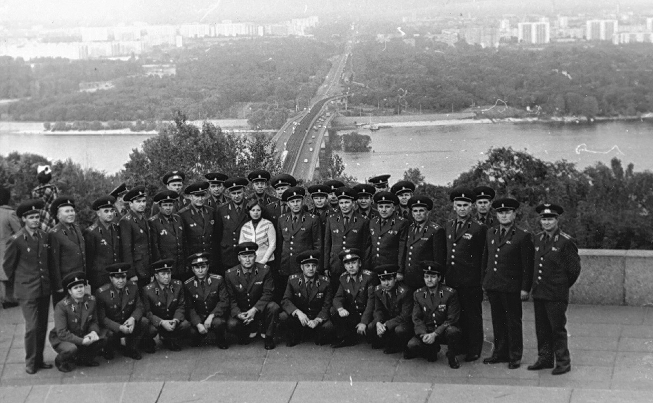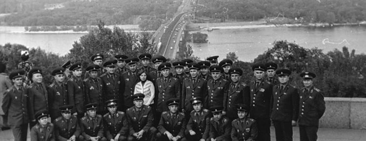 06. Research worker V. Lyubashenko (Kolpakova) with a group of servicemen. 1978