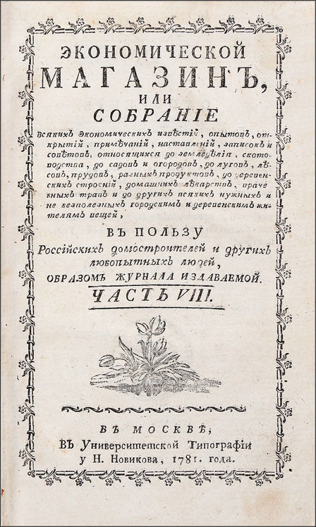 3. Title page of “Economicheskiy Magazin”, the supplement to the newspaper “Moskovskie Vedomosti”