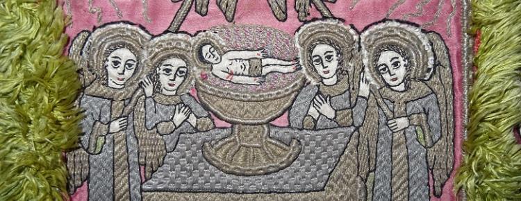A unique feature of this monument from the Preserve collection is an embroidered inscription on the lower edge: “Remember your servant, nun Theodosia, in your Kingdom of Heaven”. Such a prayer is a traditional Christian practice that mystically testifies to the participation of the contributor of the liturgical object in the liturgy. It is possible that the mentioned nun Theodosia was not only a donor but also a performer of the work. The veil, which is distinguished by its extraordinary craftsmanship, belongs to a small group of the ancient Ukrainian embroideries that have been preserved to this day. The monument was made in the middle of the 17th century in one of the Kyiv centers of goldwork.
