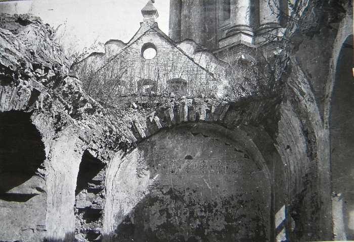 2. Tombstone of Prince Kostiantyn Ipsilanti on the ruins of the Dormition Cathedral. 1944