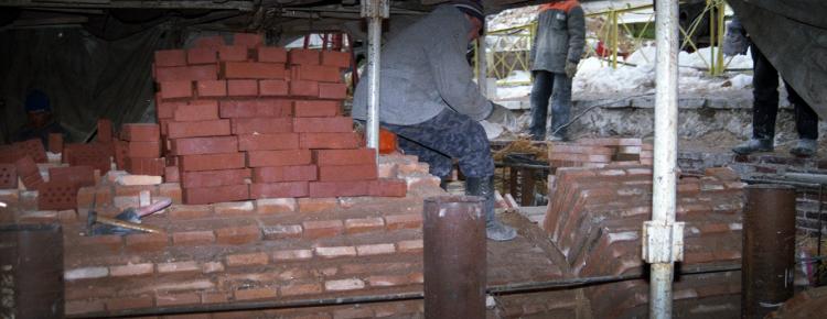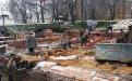 The reconstruction of the main Church of Kyiv-Pechersk Lavra presented some serious difficulties. The main of them consisted in conserving the remains of the walls built in the times of Kyivan Rus and their “involvement” into the total restored ensemble of the building, along with its new masonry. For this purpose, the latest methods of “building reconstruction” were used. In Ukraine it was done for the first time. At first, the old walls were conserved. Then, the workers eliminated cracks existing in them and connected the old masonry with the new walls. As a result, the two blocks, the old and the new ones, formed one massive. After strengthening the foundation and walls of the Сathedral, the brickwork began. The lower part of the walls was reinforced (Ills. 10-13).