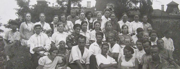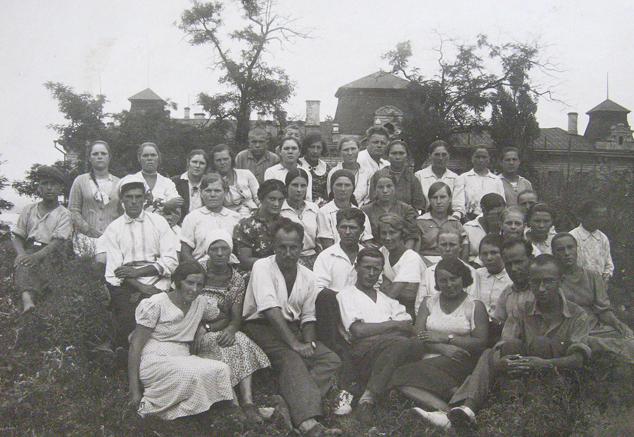 2. Employees of the Institute of Archeology of the USSR Academy of Sciences. First row: the third on the left – Mykhailo Karger, the fourth on the left – Volodymyr Goncharov [Institute of Manuscripts, Vernadsky National Library of Ukraine, f. 243, file no. 658]