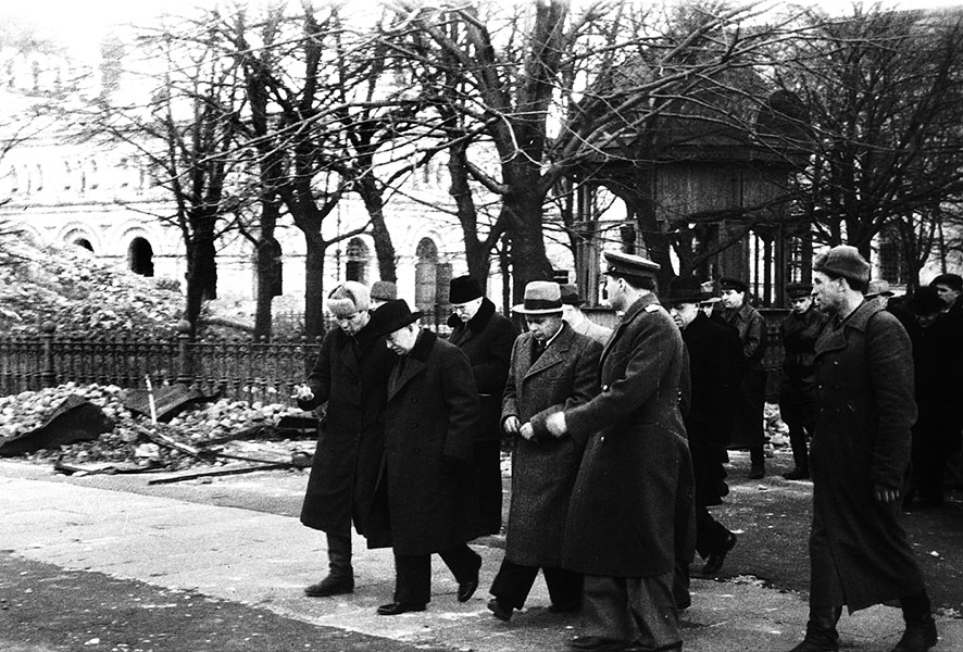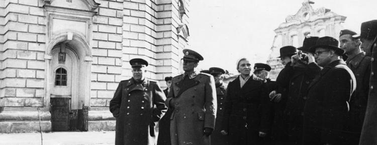 1. Yugoslav government delegation headed by Marshal Josip Broz Tito (pictured second from the left) accompanied by the First Secretary of the Central Committee of the Communist Party Mykhailo Khrushchev (pictured first from the left) in the Kyiv-Pechersk Lavra. April 1945