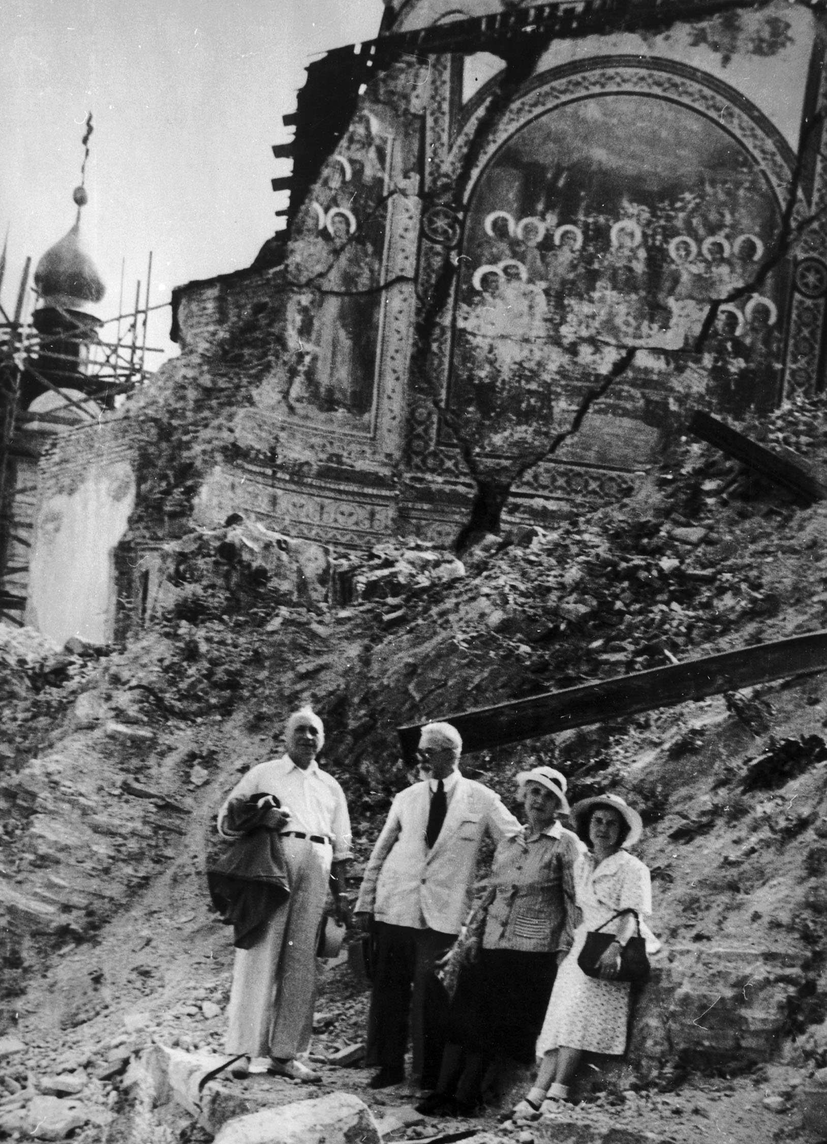 6. On the ruins of the Dormition Cathedral. Ukrainian literary critic Professor Serhiy Maslov is pictured second from the left.