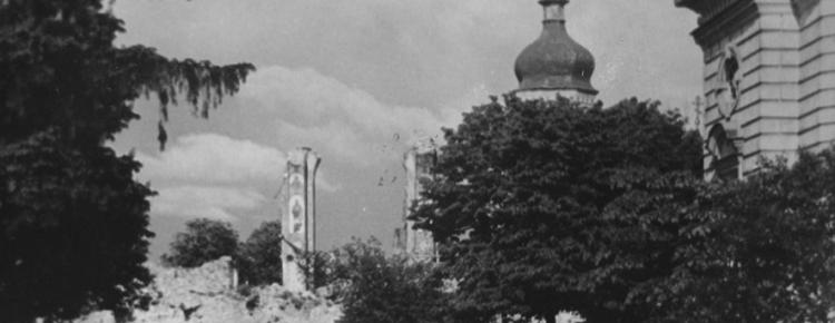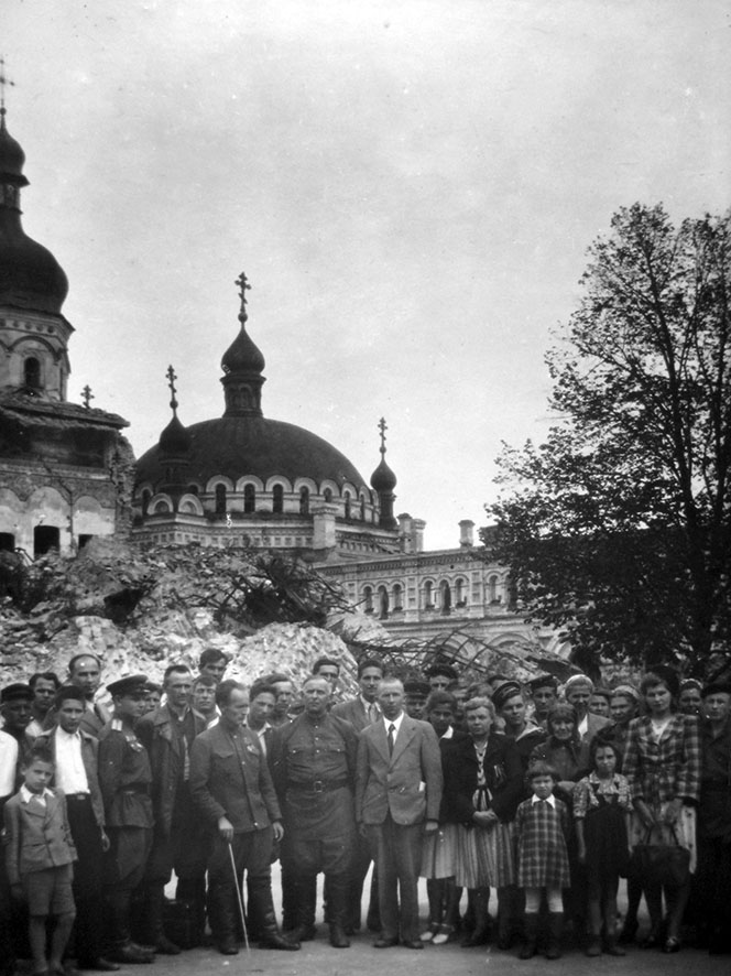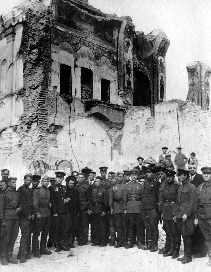 9. Group of soldiers in the Church of the Savior at Berestove near the cenotaph of Prince Yuriy Dolgoruky. 1947