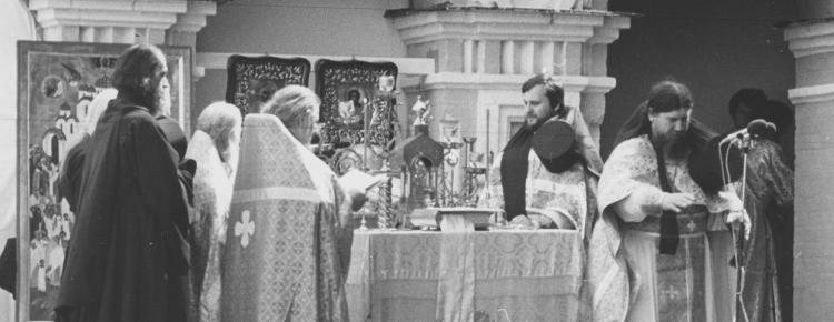 4-6. Divine Liturgy in the square in front of the entrance to the Far Caves. June 16,1988