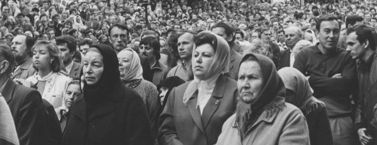 7-9. Pilgrims during the liturgy service. June 16, 1988
