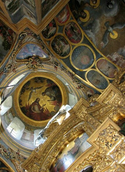 The wall painting of the Trinity Church was made in the 20-30's of the 18th century after the Great Fire of 1718, which affected most of the Lavra structures. This is the only fully preserved ensemble of Baroque monumental and decorative painting performed by the Kyiv-Pechersk Workshop. The traditional system of the monumental painting in this church has become a means of allegorical narration. Such approach was typical for Ukrainian Baroque art.