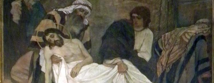 1. H.I. Popov “Transfer of the body of Christ to the tomb”. Painting of the Church of Sts. Anthony and Theodosius of Pechersk, early 20th century.