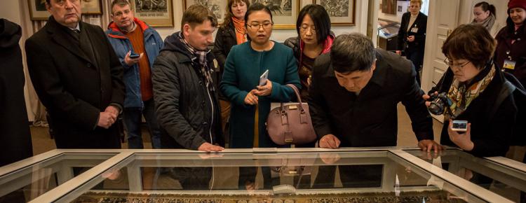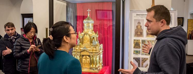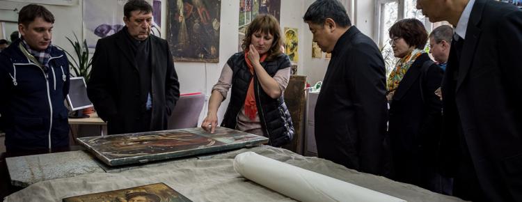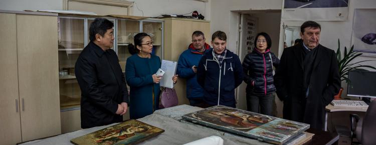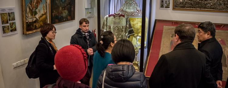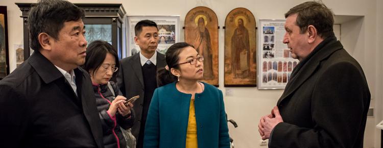 Реставраторы содержательно рассказали директору музея Гугун, господину Шаньу Цзисяну и членам его делегации о своей работе по возрождению памятников церковного искусства. Гости заповедника ближе ознакомились со спецификой труда специалистов реставрации и консервации произведений темперной и масляной живописи, полихромной скульптуры и резьбы, изделий из металла, ткани, бумаги и кожи. Их кропотливая и вдохновенная деятельность, продлевающая жизнь художественным произведениям и позволяющая современникам приобщиться к культурному достоянию прошлого вызвала в делегации музея Гугун уважение и восхищение.