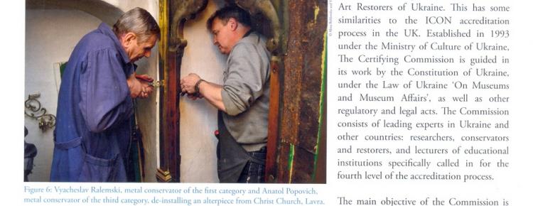 Весной 2017 г. в журнале Британской ассоциации консерваторов-реставраторов живописи (British Association of Paintings Conservator-Restorers (BAPCR)) № 50 вышла статья сотрудников Национального Киево-Печерского историко-культурного заповедника – начальника отдела научной реставрации и консервации движимых памятников С.В. Гаги-Шереметьевой и художника-реставратора I категории А.А. Марченко.