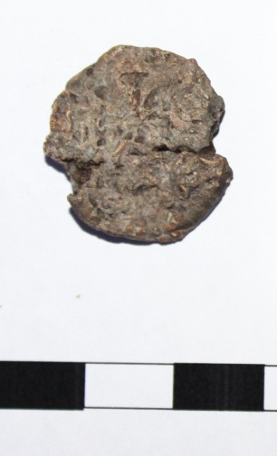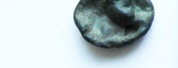 - ґудзик з кольорового металу (мідь?) округлої форми ХІ–XІV ст.;
