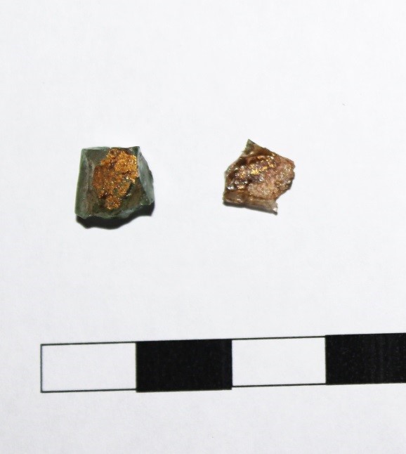 - фрагменти давньоруської різнокольорової смальти, частково золочені, XI–XII ст.;