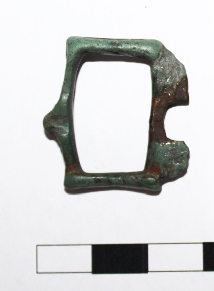 - частина пряжки з кольорового металу (бронза?) (2,7 х 2,5 см);