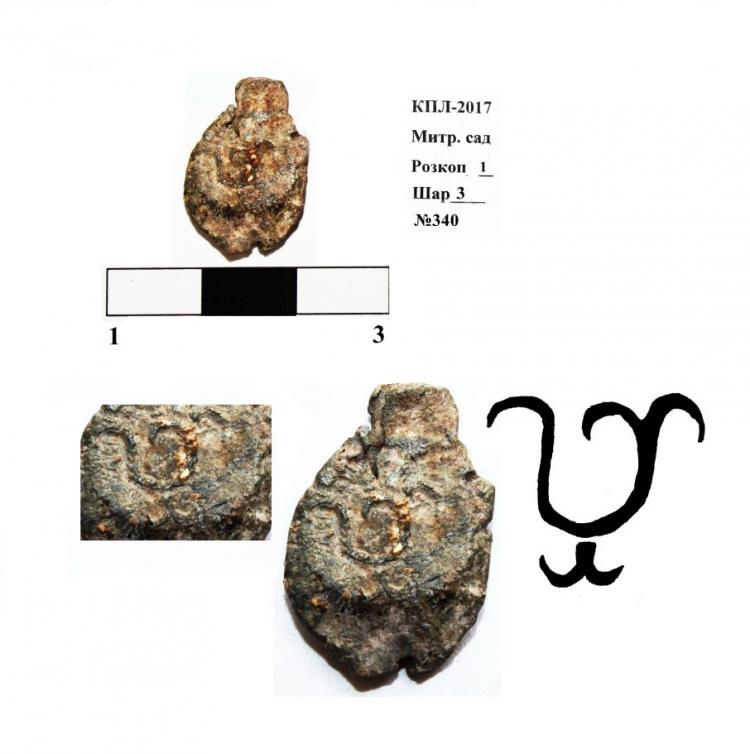 Привертає увагу свинцева пломба «дрогочинського типу» XII–XIII ст. зі знаком Рюриковичей. Пломбу віднайшли за допомогою металодетектора (В. Гнера). Це перший випадок фіксації на території Києво-Печерської лаври подібних артефактів.