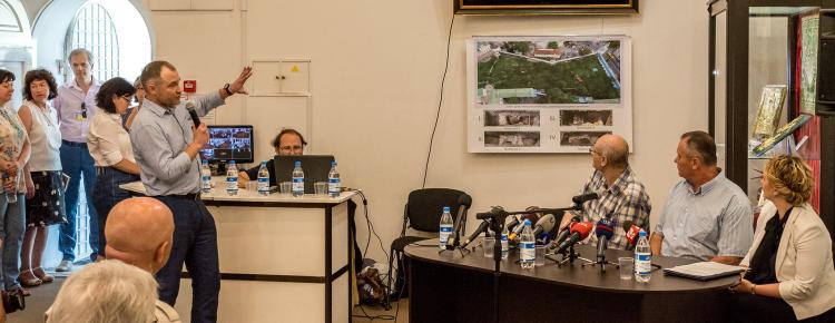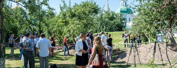 Завідувач науково-дослідного сектору археології науково-дослідного відділу історії та археології, кандидат історичних наук Сергій Тараненко як керівник розкопок провів презентацію процесу дослідження залишків давніх фортифікаційних мурів у колишньому Митрополичому саду на території Заповідника.