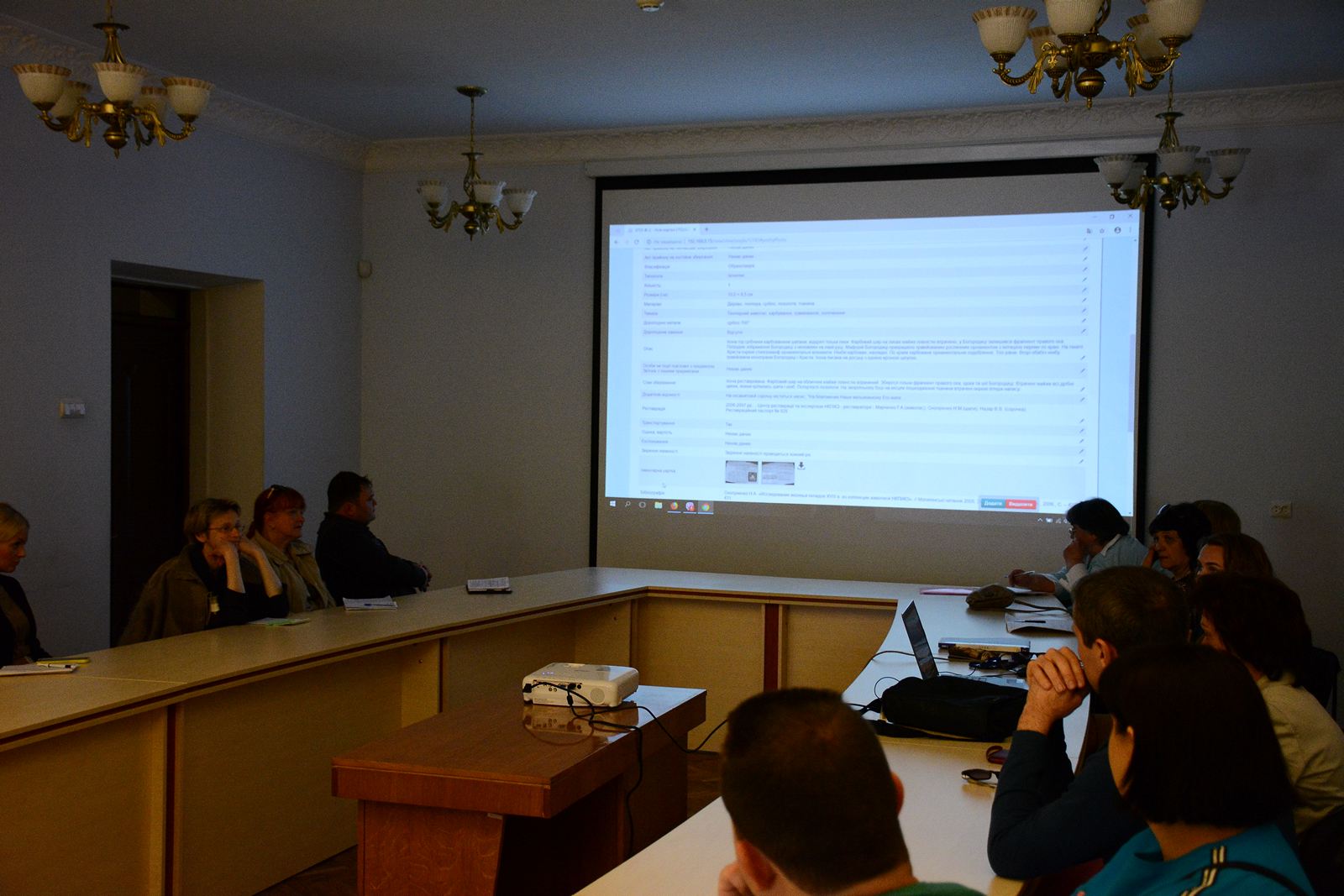Завідувач сектору обліку фондової збірки Валентина Качан, завідувач науково-дослідного сектору збереження пам’яток образотворчого мистецтва, книг та документальних матеріалів Інна Івакіна, ознайомили присутніх зі структурою каталогу, його можливостями та перспективами використання у фондово-обліковій роботі.