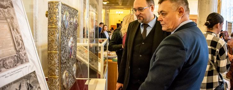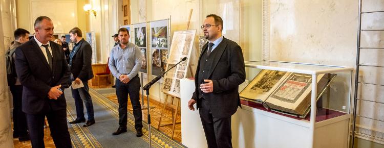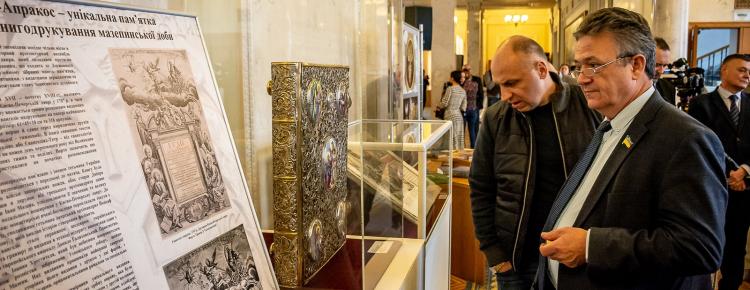 До Дня української писемності та мови у приміщенні Верховної Ради України у рамках фотовиставки «Києво-Печерська лавра – святиня України» Національний Києво-Печерський історико-культурний заповідник презентував унікальні пам’ятки українського книгодрукування - два напрестольні Євангелія у срібних окладах, видані у друкарні Києво-Печерської лаври у 1707 р. в часи гетьманства Івана Мазепи. Книги великого формату є найрозкішнішими виданнями лаврської друкарні за всі 300 років її діяльності. Раритетні Євангелія Апракос (в перекладі з грецької – святковий) – це перші і єдині видання кириличних стародруків кінця ХVІІ – початку ХVІІІ ст.