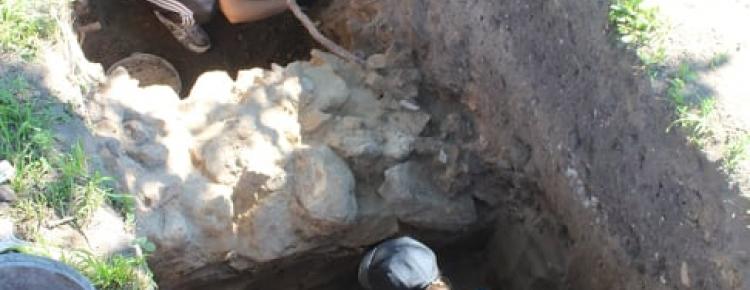 4. Робочий момент з розкопок у Митрополичому саду у 2018 р. (розчистка фундаментів мурів XII ст. Печерського монастиря).