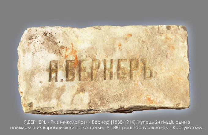 Спочатку побутувала цегла червоного та жовтого кольорів. З часом почали виготовляти лише більш якісну цеглу жовтого кольору. Цьому посприяли вигідні місцезнаходження покладів спондилової глини на Дніпрових схилах та вздовж головних водних артерій Києва. Навколо них були сконцентровані цегельні виробництва, які на середину ХІХ ст. набули промислових масштабів і створили якісно нову галузь будівельних матеріалів. Для власних потреб монастир користувався цеглою київських підприємств. Про це свідчать клейма: “Доломакінъ” (Рис. 1), “Я. Бернеръ” (Рис. 2, 3), “Шатова” (Рис. 4), “С. Ш.” (Рис. 5), “Ф. Б.” (Рис. 6), “А. С. Луневъ” (Рис. 7), “Э” (Рис. 8), “Козинскій” (Рис. 9) та ін.