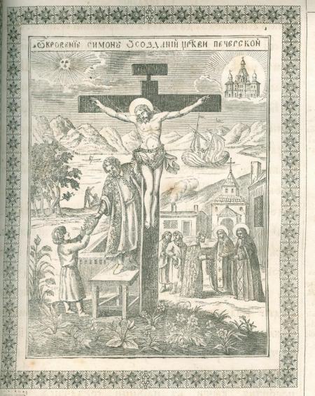 Після прибуття в Київ варяга призначили “старшим”, очевидно, тисяцьким при сині князя Ярослава Всеволоді. 1068 року після отримання важкого поранення під час програної Ярославичами битви з половцями на р. Альта Шимон дав обітницю: в разі спасіння збудувати церкву, яку бачив у своєму видінні на морі. Після одужання варяг прийшов до прп. Антонія і передав йому реліквії і сповістив про бажання побудувати в монастирі церкву в ім’я Пресвятої Богородиці. Золотий пояс мав слугувати мірою під час будівництва, а вінець – висіти над жертовником. Із того часу Шимона стали звати Симоном, і він, приходячи в монастир, завжди жертвував великі гроші. Після тривалих бесід з ігуменом Феодосієм він прийняв православ’я з усім своїм “двором” у 3000 душ. Прп. Феодосій написав молитву про прощення гріхів предкам і нащадкам варяга, яку після смерті вклали в руку Симона. З того часу пішов на Русі звичай вкладати в руки покійному звиток із заупокійною молитвою. Симона, як колись обіцяв йому прп. Антоній, було першим поховано у Великій церкві. Сталося це невдовзі після освячення храму в 1089–1091 роках.