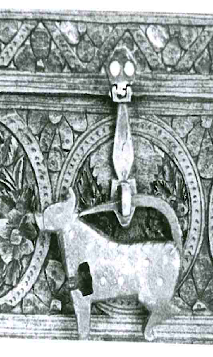 Серед матеріалів, отриманих у результаті науково-рятівних археологічних досліджень 2018–2019 рр. на території церкви Спаса на Берестові, виразно виділяється імпортований предмет – стулка зооморфного замка у вигляді коника, прикрашеного циркульним орнаментом. Дослідження проводили науково-дослідний сектор археології НКПІКЗ (керівник к.і.н. С. Тараненко) та Архітектурно-археологічна експедиція Інституту археології НАН України (керівник к.і.н. В. Івакін).